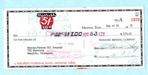 Title (ebay affiliate link): GOLDCREST 51 BEER CANCELED CHECK TENNESSEE BREWING CO