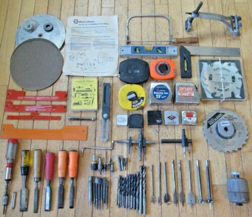 Title (ebay affiliate link): Lot of Woodworking Tools - Dados, Sanding Attachment, Chisels, Power Bits & More
