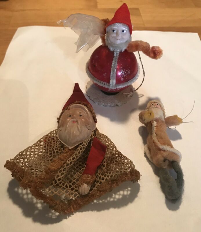 3 Vintage Christmas Santa Mesh Candy Container German Japan Figure Ornaments