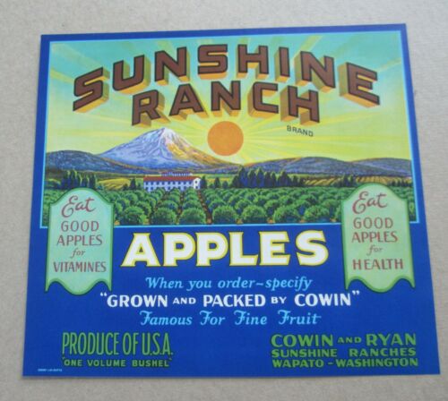 Title (ebay affiliate link): Original Old Vintage 1940''s - SUNSHINE RANCH - Apple LABEL - Wapato Washington