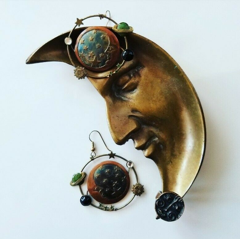 Title (ebay affiliate link): Bronze Man Crescent Moon Face Trinket Tray Dish Art Nouveau Brass Desk Figural