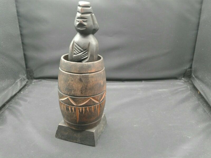 Vintage Hand Carved Wood Naughty Man In A Barrel - Risque