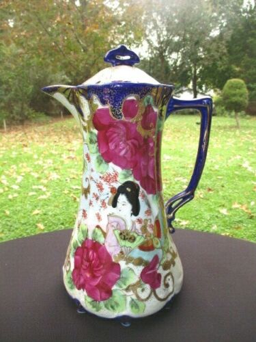 ROYAL IMARI COFFEE COCOA POT GEISHA IN GARDEN GOLD DETAILS COBALT BLUE WINE ROSE