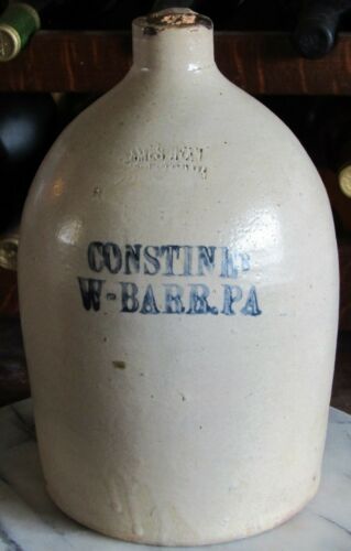 JAMES RYAN 2 Gallon Stoneware Jug - CONSTINE''S, W-BARR, PA