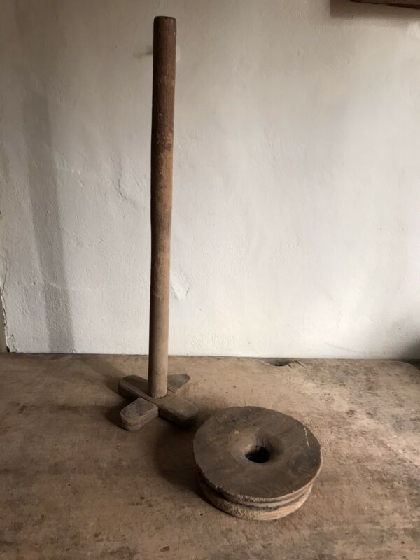 Title (ebay affiliate link): OLD Antique Handmade Short Wooden Butter Churn Lid & Dasher Worn Patina AAFA