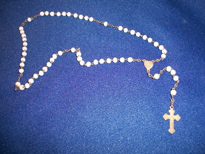 Childs Estate Milk White Glass Bead Rosary