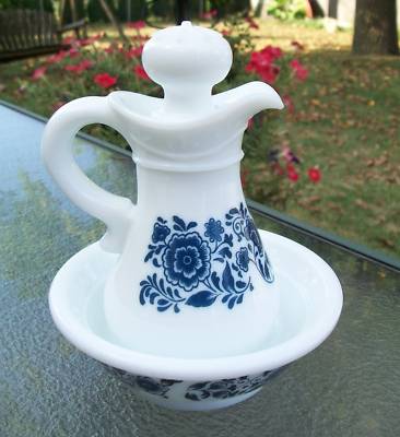 Vintage Avon Milk Glass Pitcher/Bowl Set-Blue Flowers!!