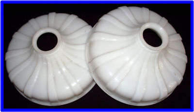 2 LARGE DECO INDUSTRIAL MILK WHITE GLASS HANGING SHADES