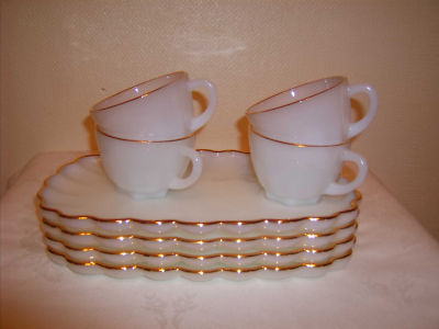 VTG Fire KIng milk white glass & 22 kt gold snack set!!