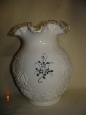 Fenton Silver Crest Rose Vase - Elizabeth Milk Glass