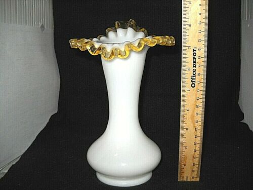 Title (ebay affiliate link): Vintage Fenton Milk glass Yellow Crest Vase. Jack in the Pulpit Great gift!
