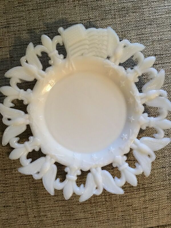 Title (ebay affiliate link): WESTMORELAND MILK GLASS VINTAGE PATRIOTIC 4TH JULY FLAG EAGLE FLEUR de LIS PLATE