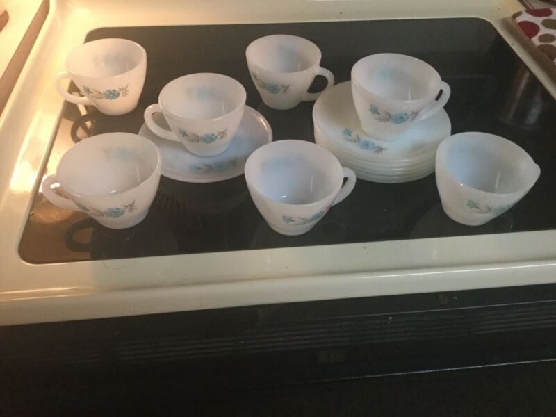 Fire King Tea Coffee Cup And Saucer Set Of 7 Cups/saucers