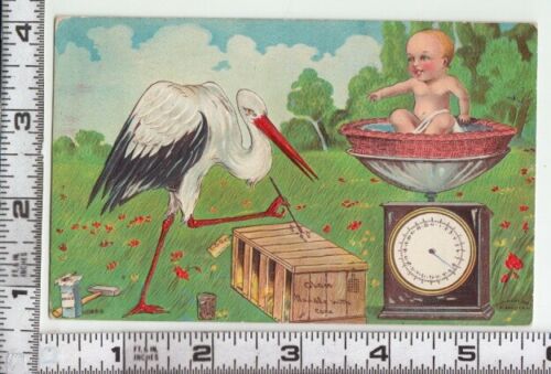 Title (ebay affiliate link): STORKS "Best Wishes" - Embossed Baby Atop a Stork, Babies on Lily Pads - 255