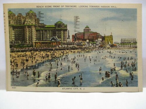 Title (ebay affiliate link): 1940 POSTCARD BEACH SCENE IN FRONT OF TRAYMORE, HADDON HALL, ATLANTIC CITY NJ