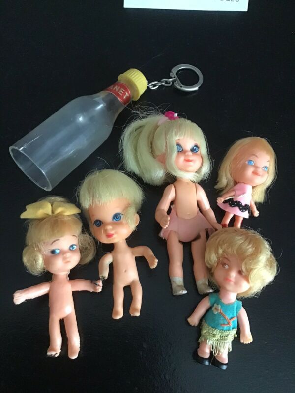 Title (ebay affiliate link): Vintage Liddle Kiddles Repair Clone Lot Hong Kong 5 Dolls Soda Bottle Keychain