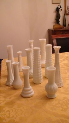WHITE MILK GLASS BUD VASE LOT 12 BRODY RANDAL & MORE
