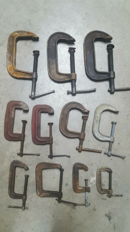 Title (ebay affiliate link): (11) VTG Adjustable C- Clamp Cincinnati Brinks Judd Stanley Standard Lot USA
