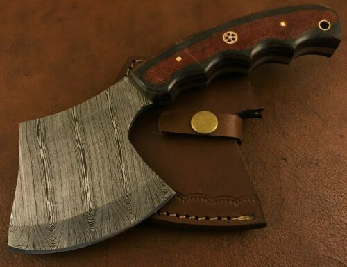 Title (ebay affiliate link): Handmade Damascus Steel Mini Hatchet/ Axe-Functional-Hiking-Camping-Dha22