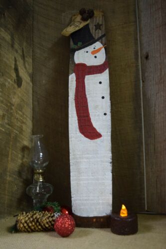 Hand painted Wooden Antique Barrel Stave Christmas Winter Snowman 18"H
