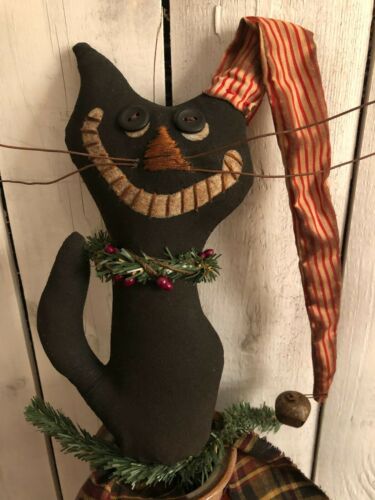 Primitive Doll Cat Doll Black Christmas Doll Halloween Doll Folk Art Poke Santa