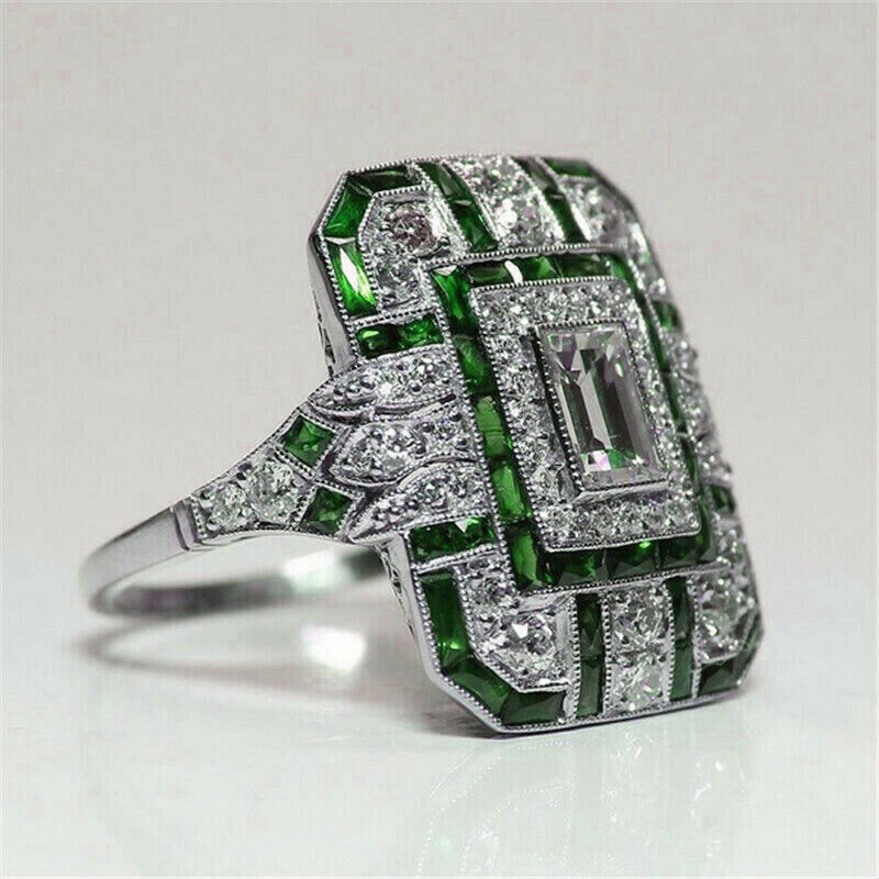 Title (ebay affiliate link): Antique Art Deco Large Jewelry Silver Emerald & Diamond Engagement Ring size 9