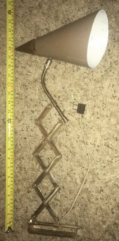 Title (ebay affiliate link): Vintage Mid Century Pierced Accordian Scissor Wall Mount Lamp Light Cone Shade