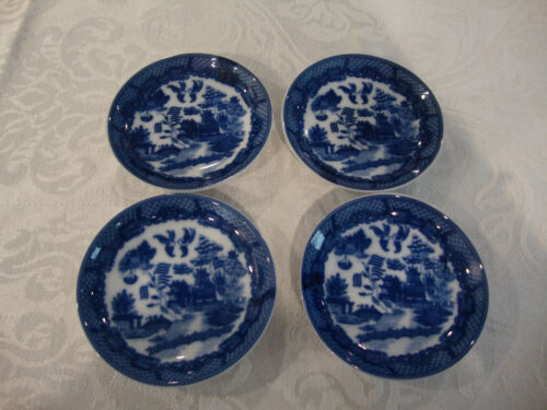 SET of 4 BLUE WILLOW BUTTER PAT DISHES - 3 1/2 inches
