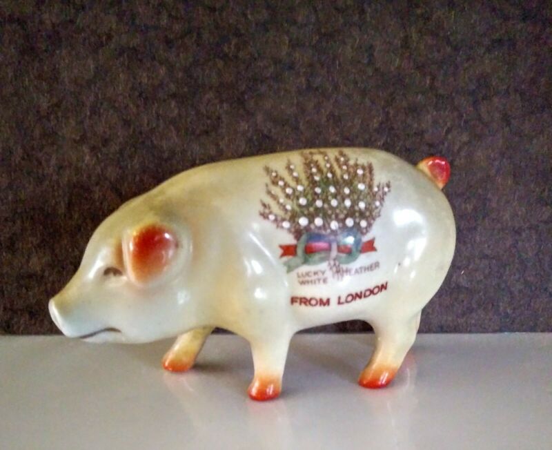 Antique Pig Figure Lucky White Heather from London Cute Piggy !! Souvenir