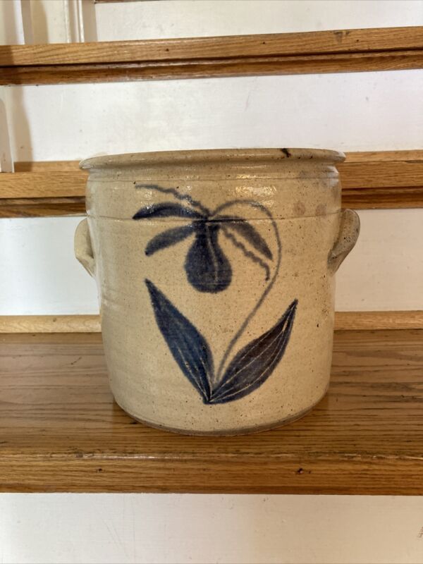 Title (ebay affiliate link): Salt Glazed Stoneware, Colbalt Blue Flower Design 7.5" By 8"