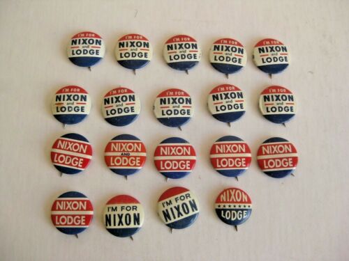 Title (ebay affiliate link): 19 Vtg 1960 RICHARD NIXON HENRY LODGE PRESIDENTIAL CAMPAIGN PINBACK BUTTON LOT