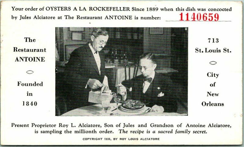 Title (ebay affiliate link): 1944 New Orleans Postcard RESTAURANT ANTOINE Oysters Rockefeller Numbered Card