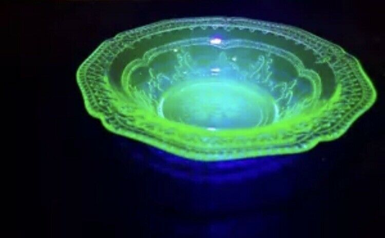 Vintage FEDERAL 5" Patricia Decorative BOWL Green Uranium Depression Glass RARE