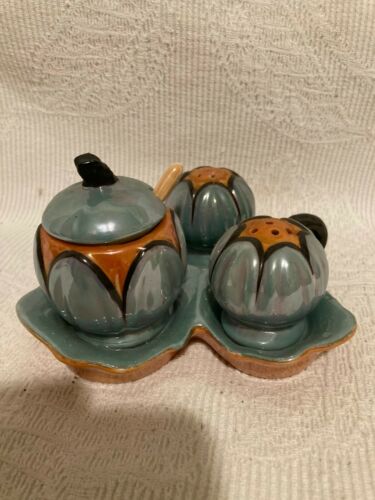 Title (ebay affiliate link): Vintage Made in Japan Salt, Pepper and Relish Set Luster Leaf Tray Undertray