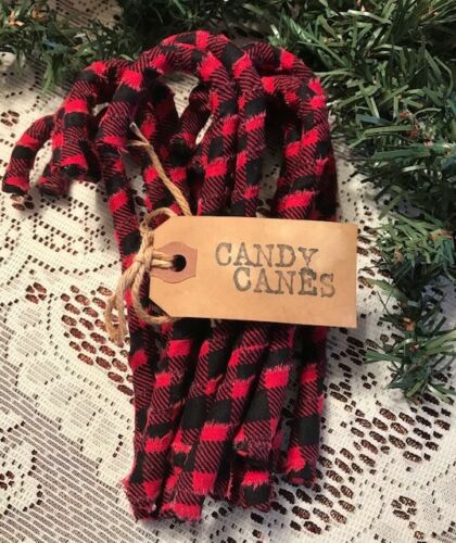 Title (ebay affiliate link): 12 Primitive RED BUFFALO CHECK Fabric Candy Canes Christmas Farmhouse Decor A4