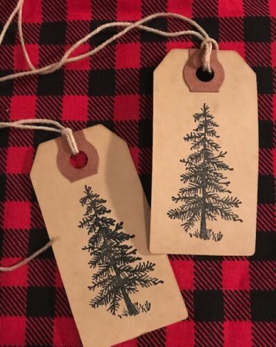 Title (ebay affiliate link): 100 Small CHRISTMAS PINE TREE Primitive Coffee Stained Price Hang Tags Lot A3