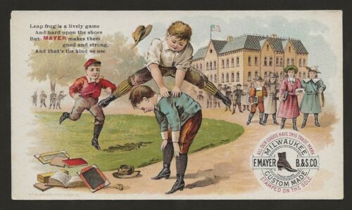 Title (ebay affiliate link): F. Mayer Boot and Shoe Co. - Boys playing leapfrog - American poem version
