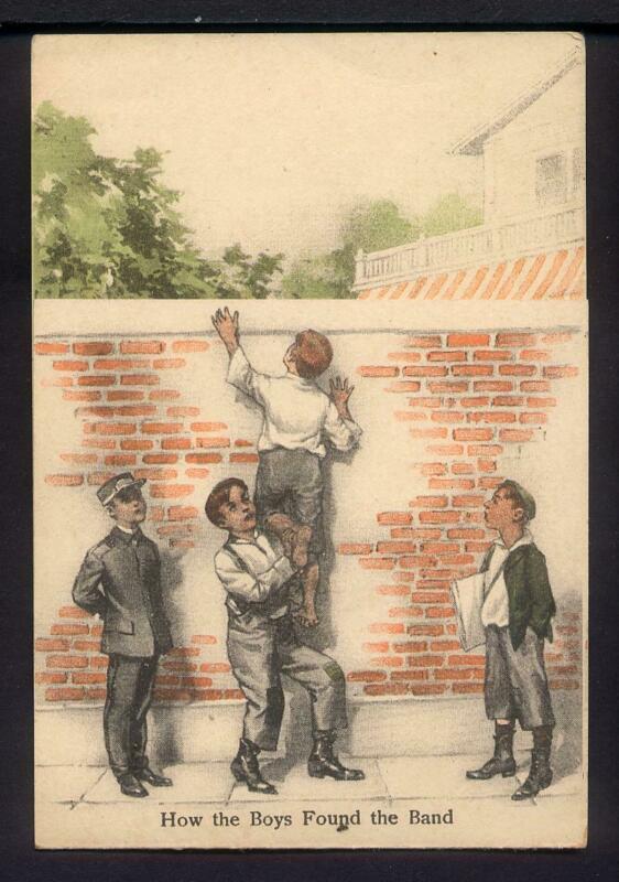 1910 EDISON PHONOGRAPH Metamorphic Trade Card HOW THE BOYS FOUND THE BAND