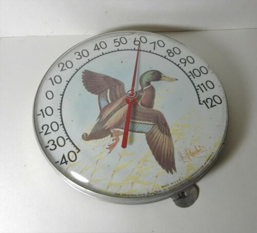 VINTAGE SIGNED LES KOUBA OHIO JUMBO DIAL MALLARD DUCK THERMOMETER