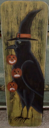 *~*PRIMITIVE*~* HP FOLK ART CROW * JACK-O-LANTERN * HALLOWEEN *~* OLD FAN BLADE