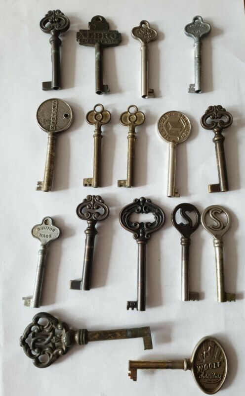 16 Vintage Furniture Keys, decorative, ASRO, MEREDEW, WOOLF, ALBRO...