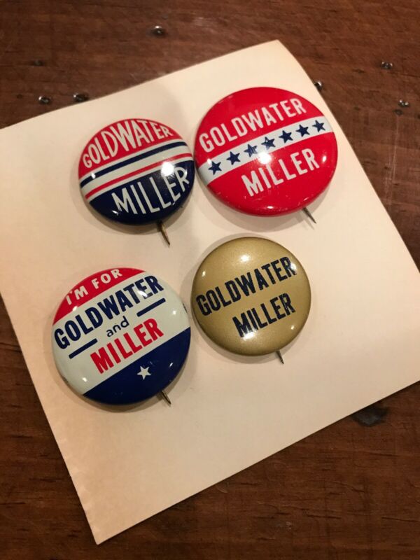 Title (ebay affiliate link): Set of 4 Vintage Goldwater Miller Political Campaign Buttons Excellent Condition