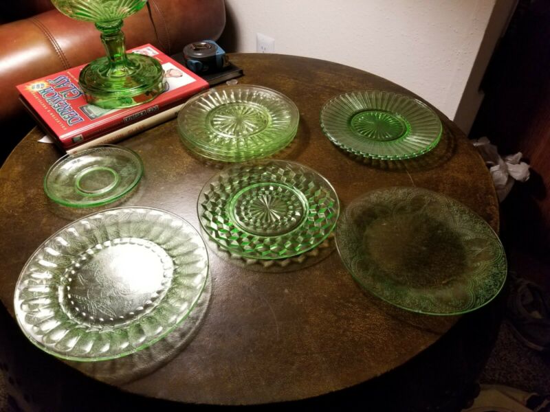 Title (ebay affiliate link): Lot Of 10 Uranium Glass Plates/bowl Jeanette, Imperial, Hazel Atlas, Depression