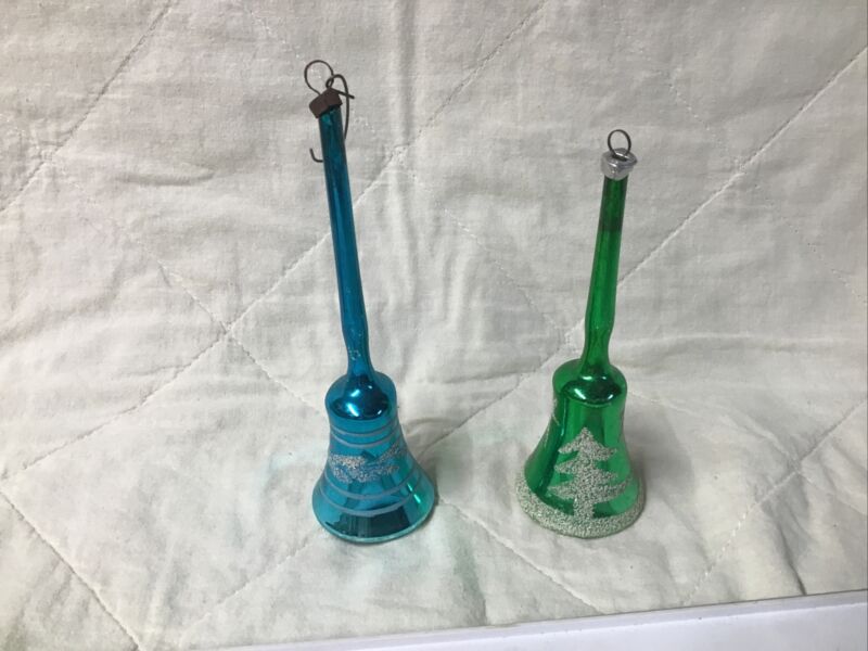 2 Vintage Mercury Glass Tree Bell Stenciled Christmas Onaments