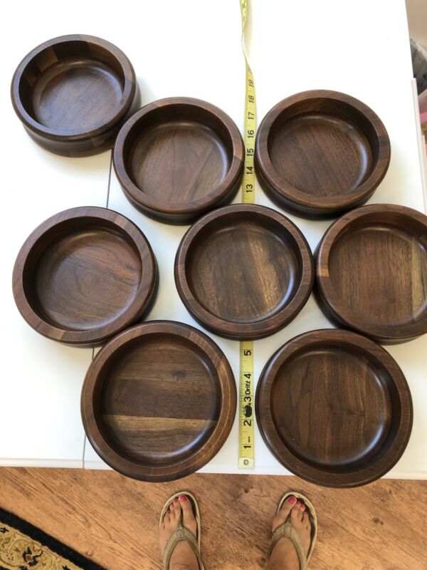 Title (ebay affiliate link): Vintage Vermillion Real Walnut Salad Snack Bowl Mid Century Lot of 8