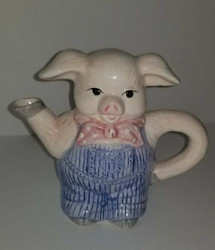 Vintage Porcelain Attic Pig Creamer Wearing Overalls