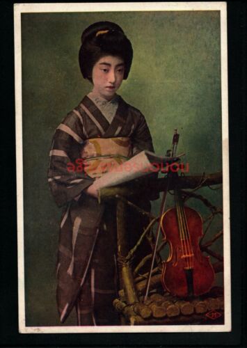 JAPAN GEISHA GIRL VIOLIN POSTCARD E20C - JA267