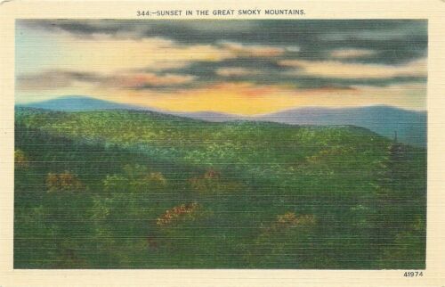 Title (ebay affiliate link): Vintage Tennessee North Carolina Linen Postcard Sunset In Great Smoky Mountains