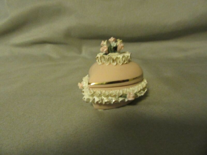 Title (ebay affiliate link): Crown N Capodimonte Small Pink Heart Shaped Trinket Box VICTORIA Flowers & Lace