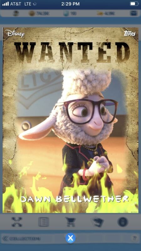 Title (ebay affiliate link): topps disney collect Villains Wanted Fire Dawn Bellweather (Digital Card) SR